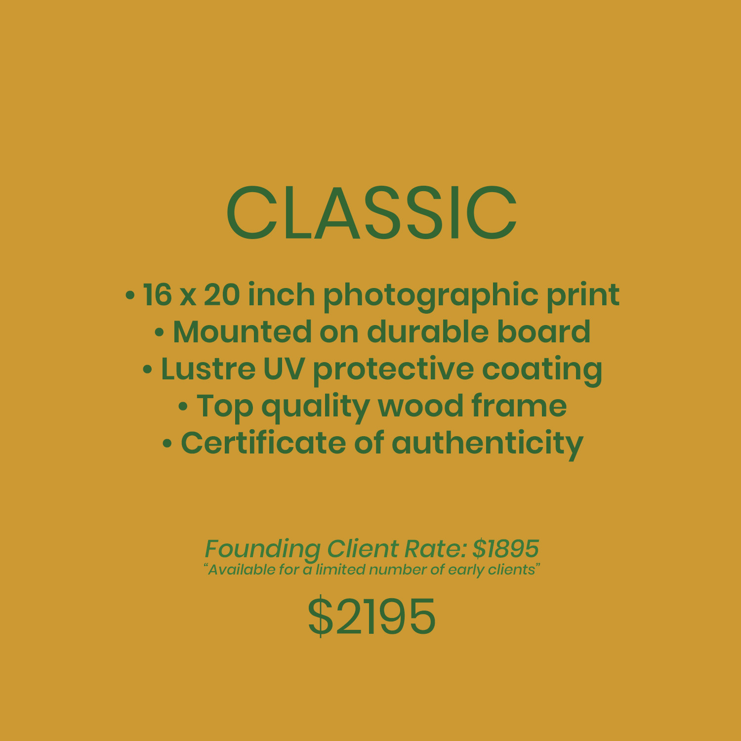 Many of the great classic art masters considered the frame to be a part of the art itself and not just something to hold it for display. In that spirit, we put great effort into finding the perfect frame to complement the image. In particular, our Goldleaf Heirloom product is framed in a hand-carved wood frame that is hand-finished with real yellow or white gold leaf. These are the very same frames that adorn masterpieces in art galleries around the world -- each one crafted to order.